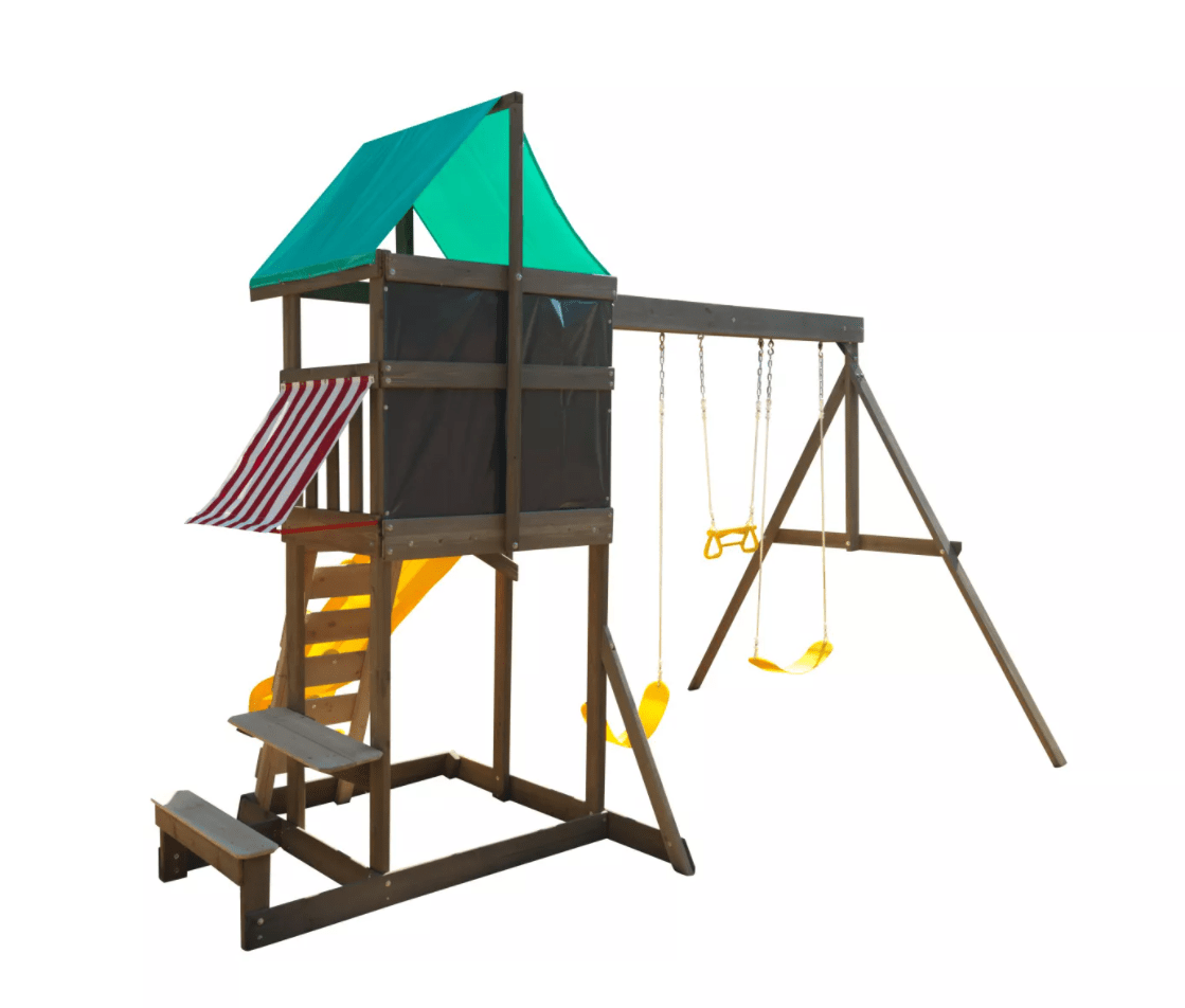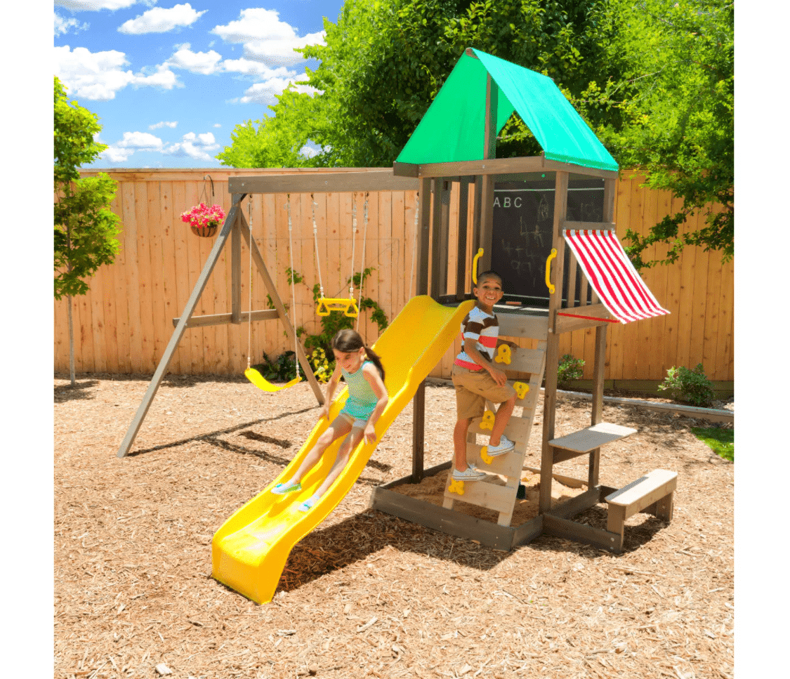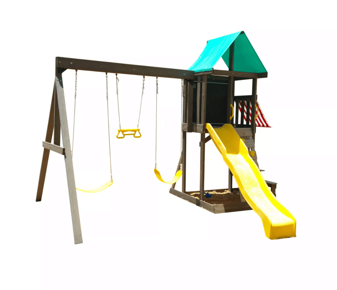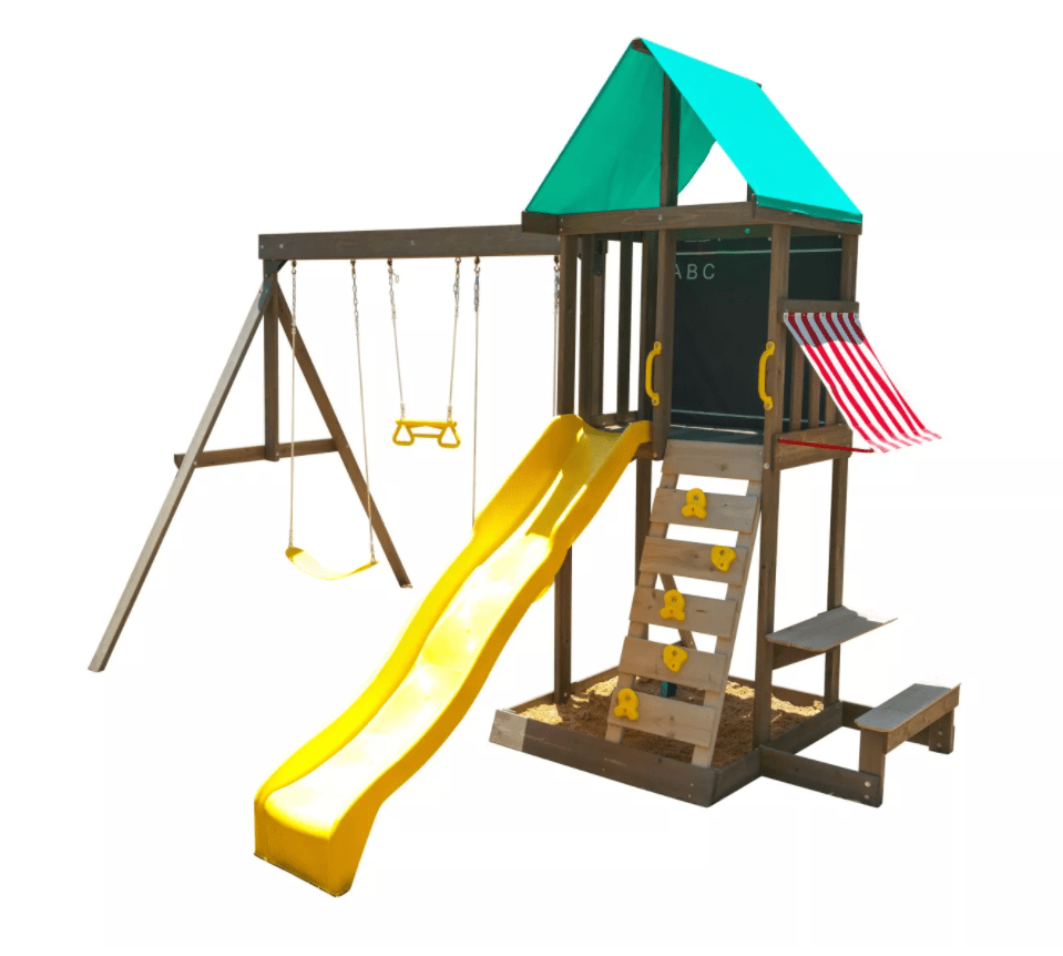 - Shaded sandbox and attached picnic table, bench and shaded awning